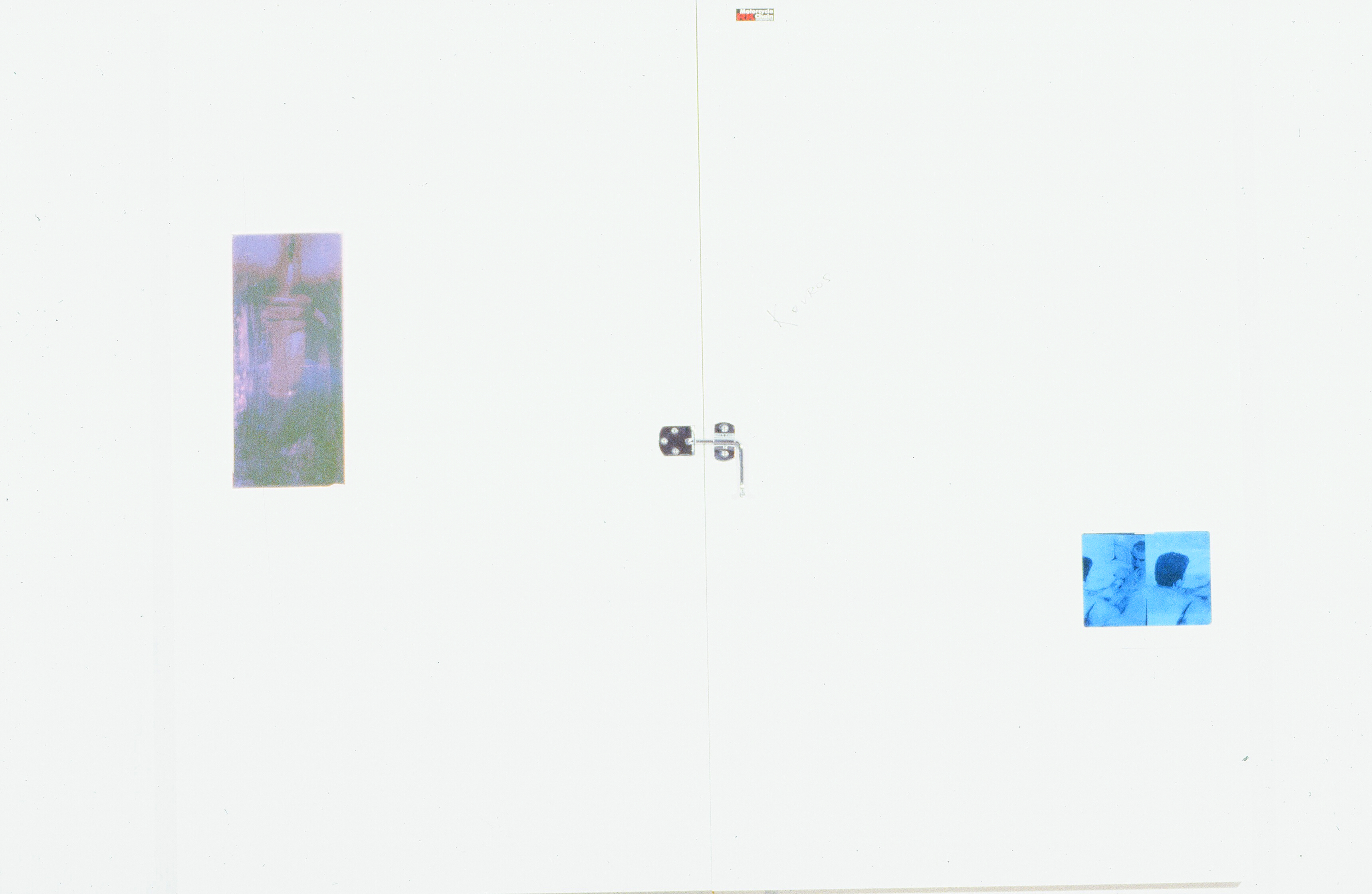 86 x72, chrome-metal latch, plexiglas and thermo-photo printed images on wood panel, 1999